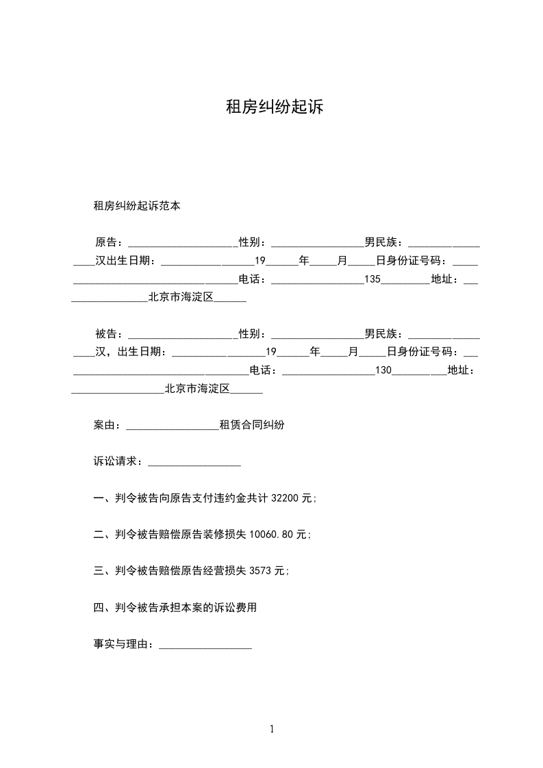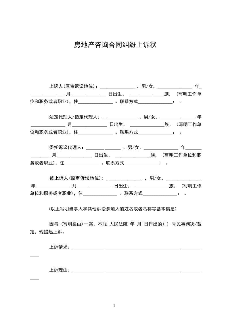 原告:________,民族________,出生________年________月________日,工作职务________,居住地址________________________,电话:________________