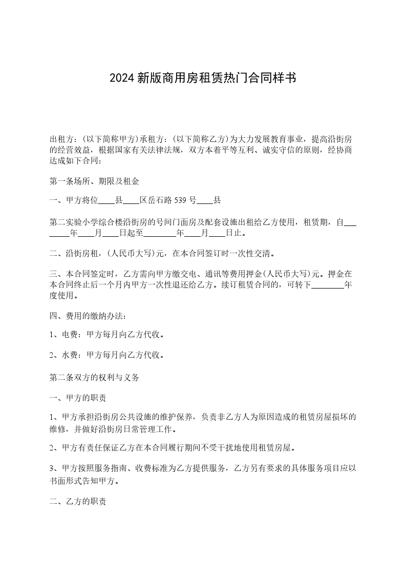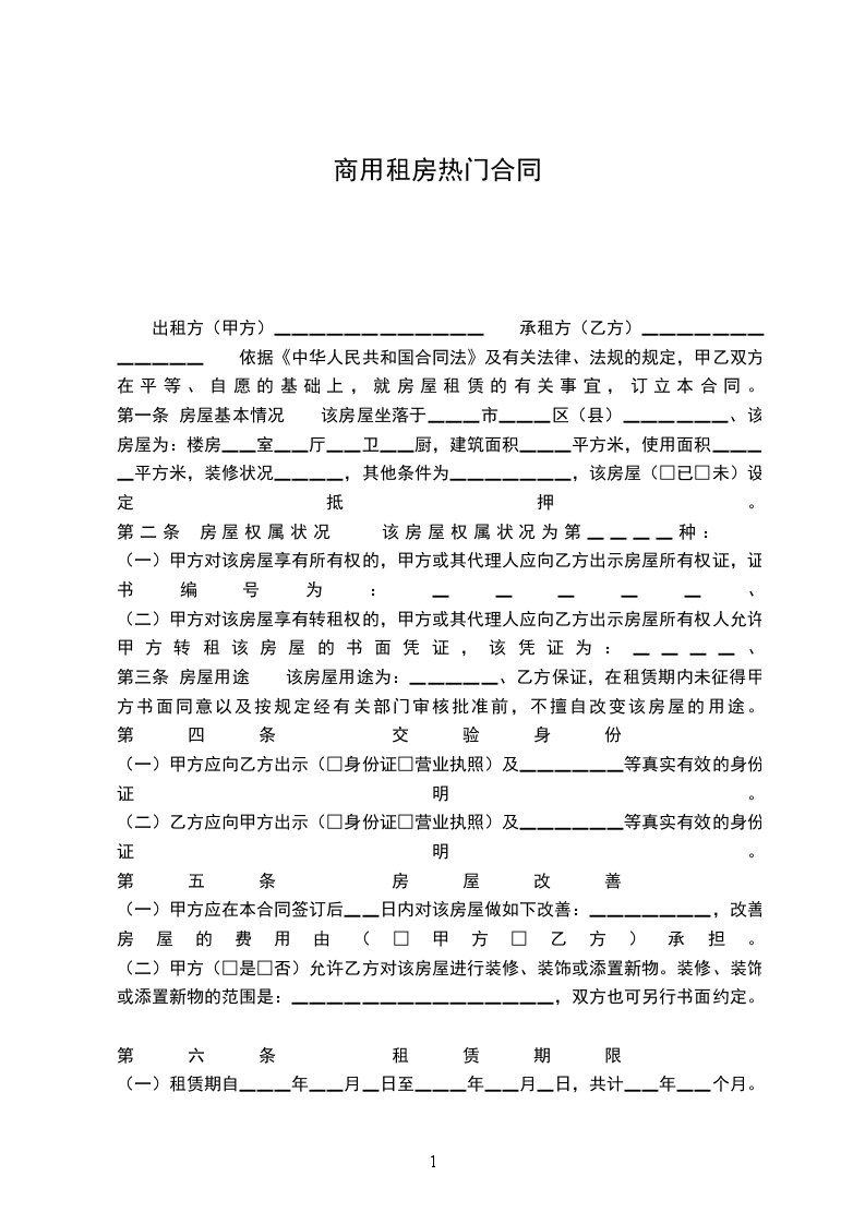 (一)租金标准:▁▁▁元(□月□季□半年□年),总计:▁▁▁▁元(大写:▁▁▁▁▁▁元)
