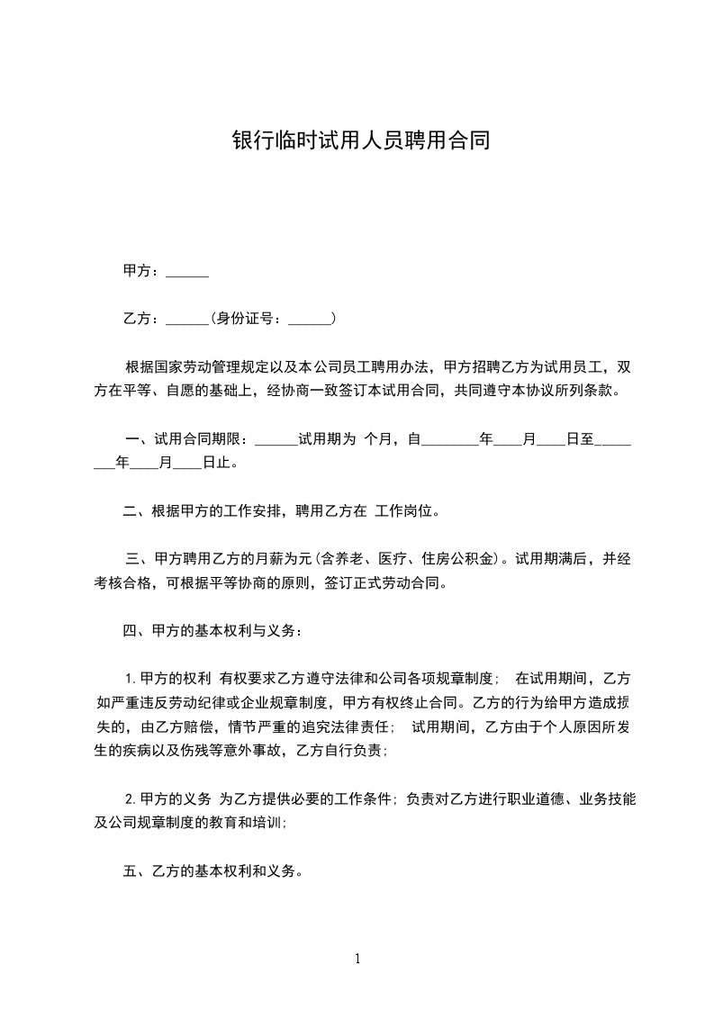 根据国家劳动管理规定以及本公司员工聘用办法,甲方招聘乙方为试用员工,双方在平等、自愿的基础上,经协商一致签订本试用合同,共同遵守本协议所列条款。