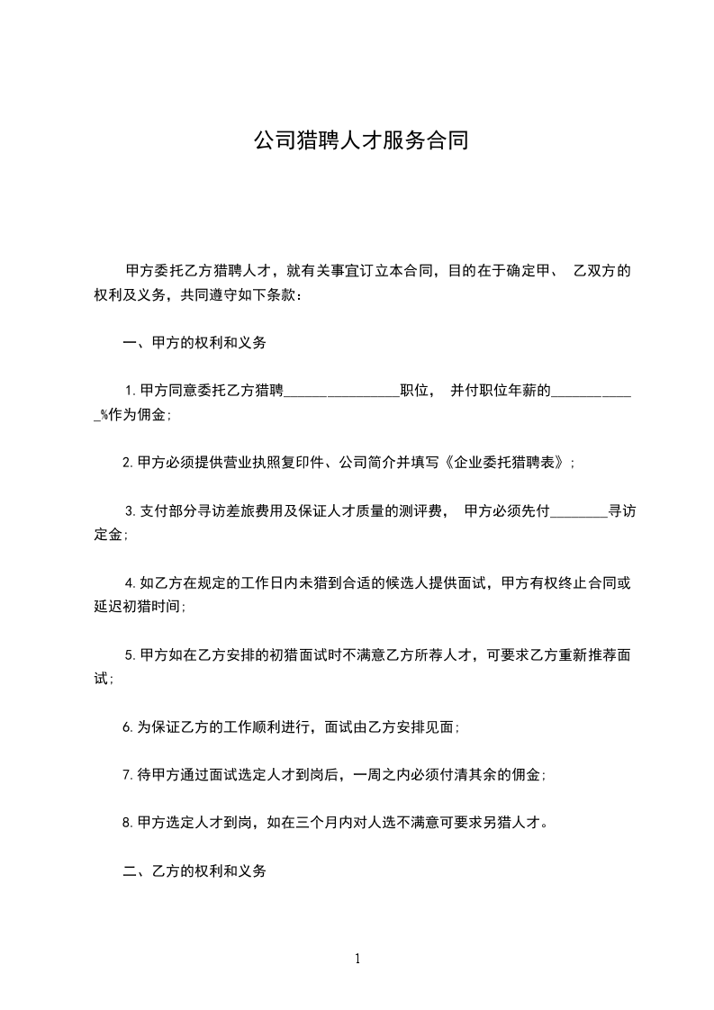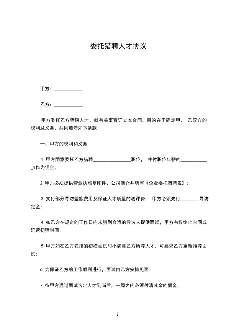 1.甲方同意委托乙方猎聘________________职位, 并付职位年薪的____________%作为佣金;
