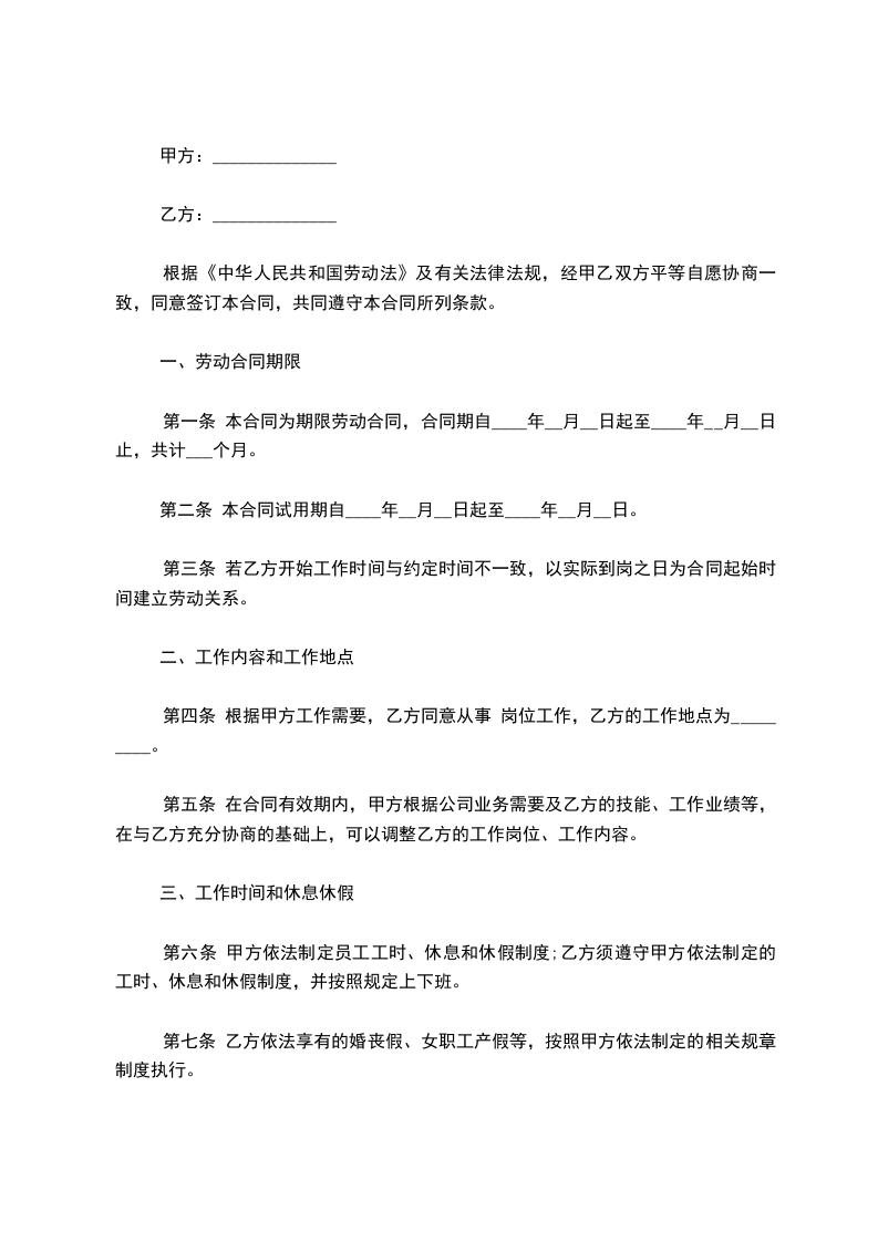 第一条 本合同为期限劳动合同,合同期自____年__月__日起至____年__月__日止,共计___个月。