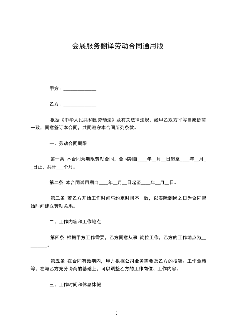 第一条 本合同为期限劳动合同,合同期自____年__月__日起至____年__月__日止,共计___个月。