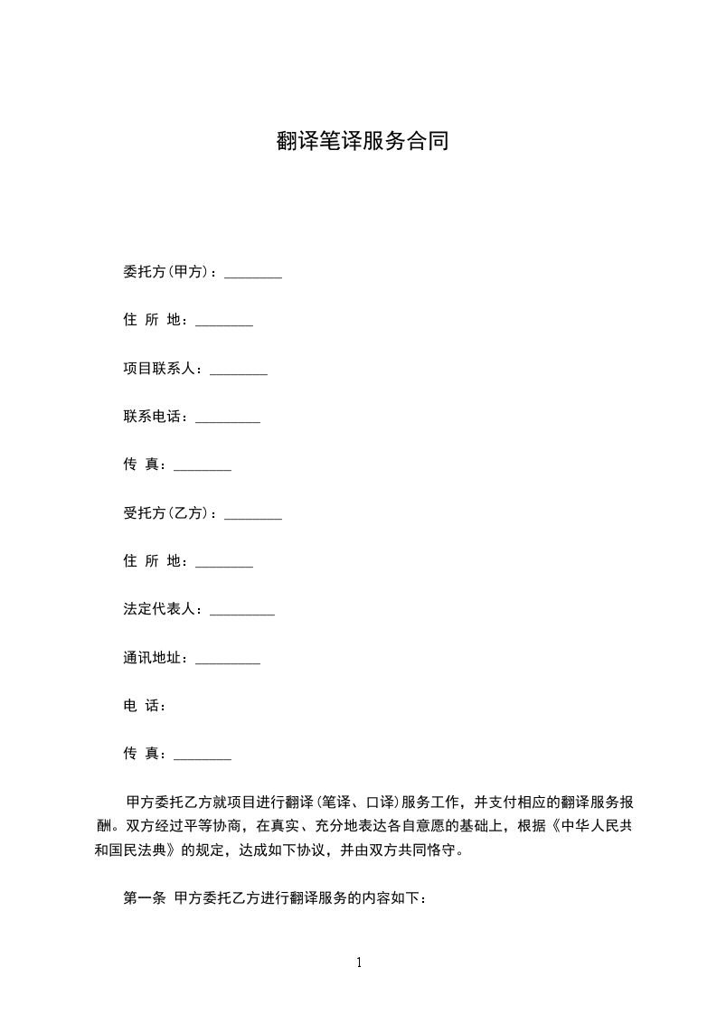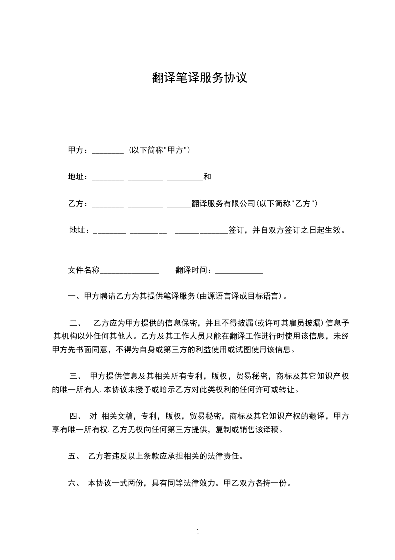 第二十八条 本合同一式贰份,甲乙双方各执壹份。