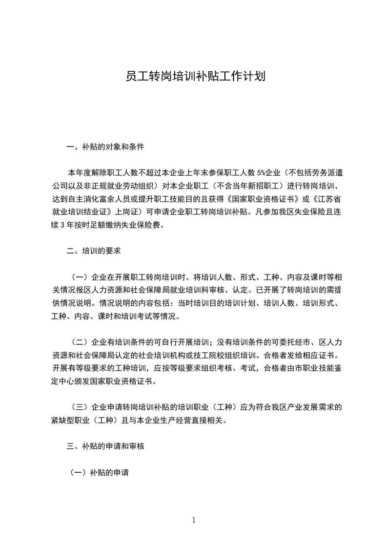 本年度解除职工人数不超过本企业上年末参保职工人数5%企业(不包括劳务派遣公司以及非正规就业劳动组织)对本企业职工(不含当年新招职工)进行转岗培训、达到自主消化富余人员或提升职工技能目的且获得《国家职业资格证书》或《江苏省就业培训结业证》上岗证)可申请企业职工转岗培训补贴。凡参加我区失业保险且连续3年按时足额缴纳失业保险费。