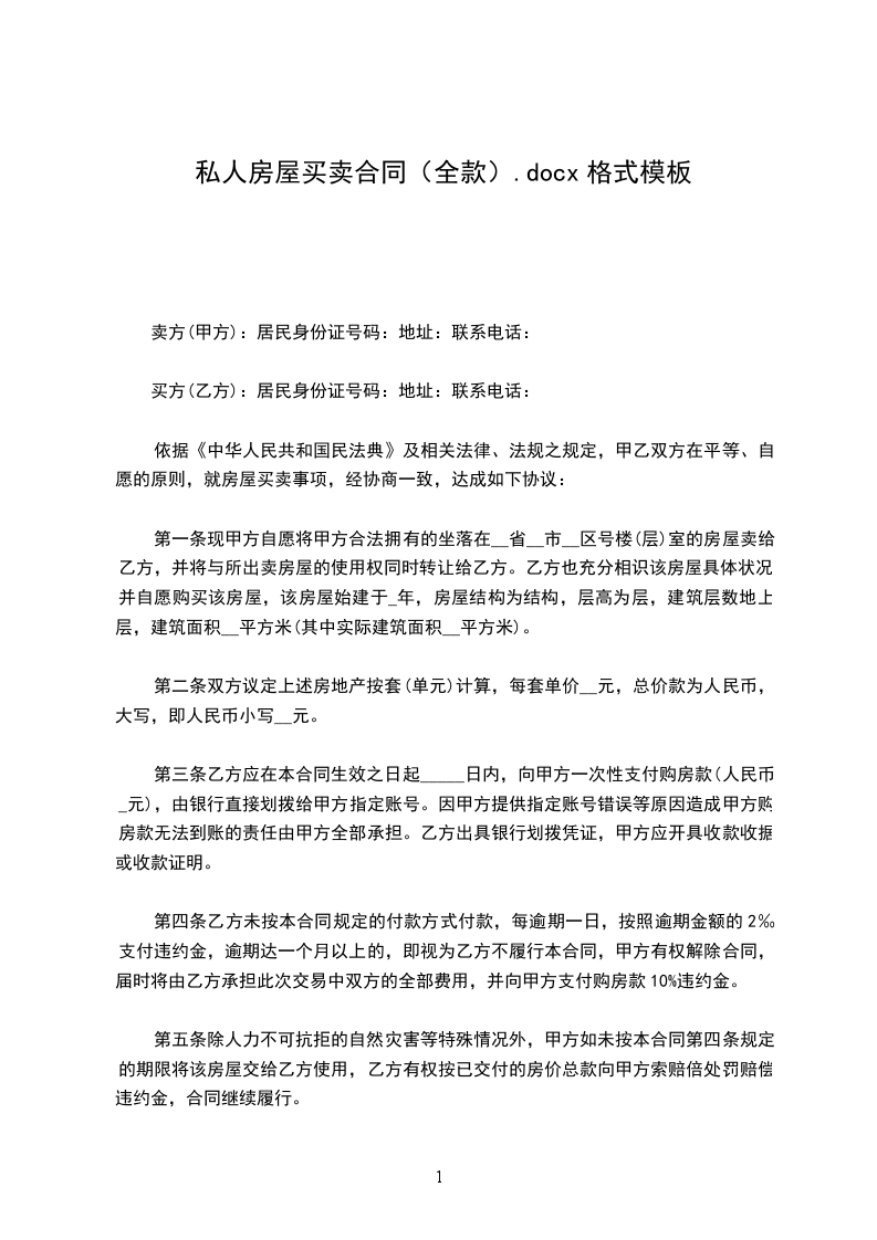 八、甲方应在 个月前将该房产交付乙方;届时该房产应无任何担保、抵押、房产瑕疵,无人租住、使用;无欠账,如电话费、水电费、物业管理费、取暖费、入网费、有线电;一方如不能按规定交付房产或按规定支付房款,每逾期一日,应向对方支付 元罚金,逾期 日视为毁约;如因政府及银行规定,本合同涉及房产手续客观上不能办理过户或银行不能办理按揭导致合同解除,不适用本条款。