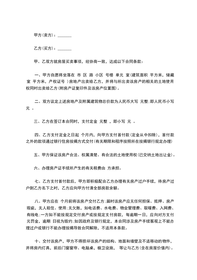 甲、乙双方就房屋买卖事项,经协商一致,达成以下合同条款: