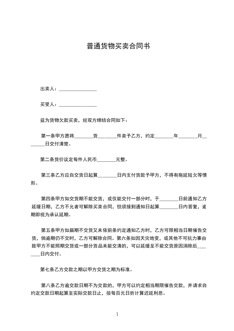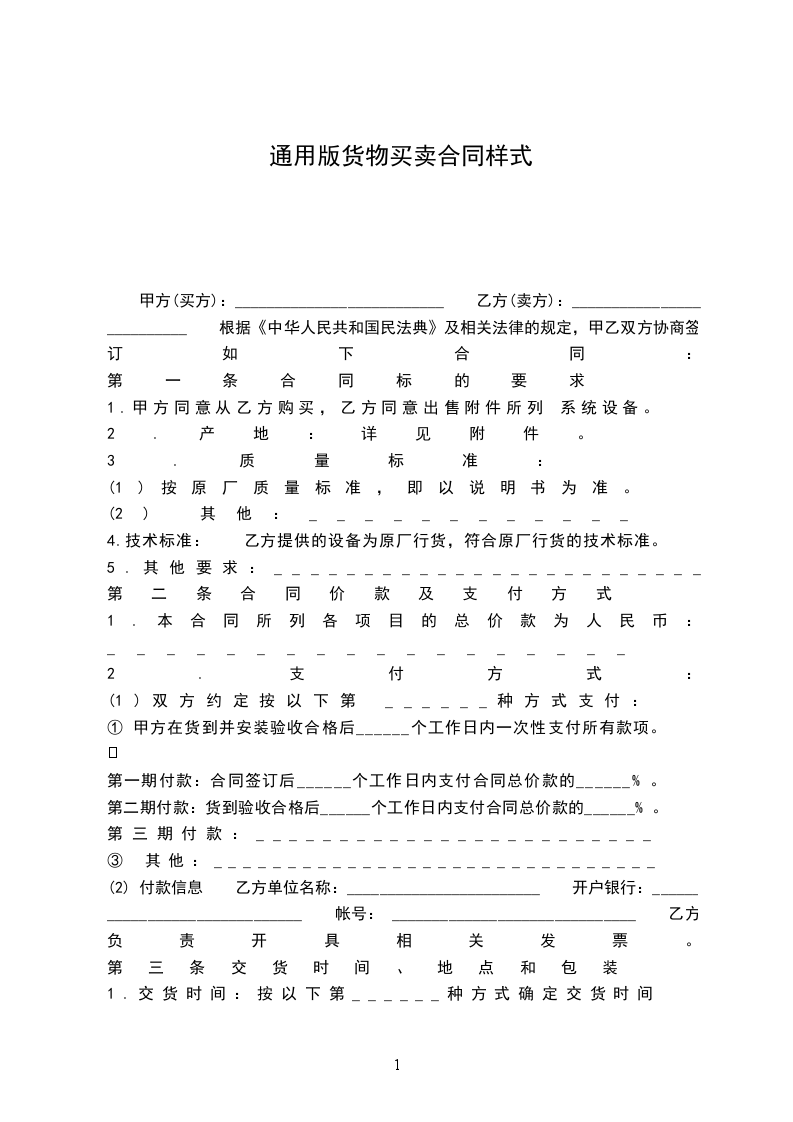 甲方(买方):__________________________ 乙方(卖方):__________________________ 根据《中华人民共和国民法典》及相关法律的规定,甲乙双方协商签订如下合同: