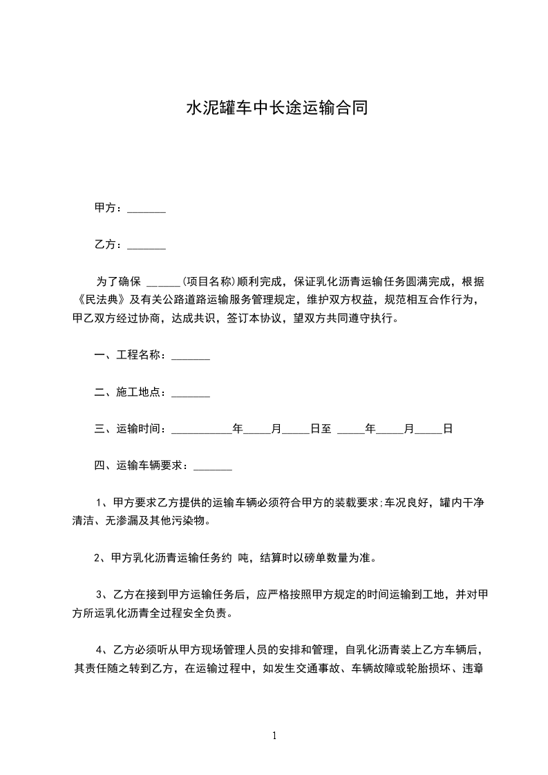 为了确保 ______(项目名称)顺利完成,保证乳化沥青运输任务圆满完成,根据《民法典》及有关公路道路运输服务管理规定,维护双方权益,规范相互合作行为,甲乙双方经过协商,达成共识,签订本协议,望双方共同遵守执行。