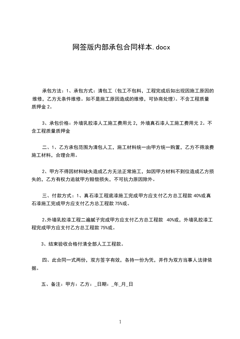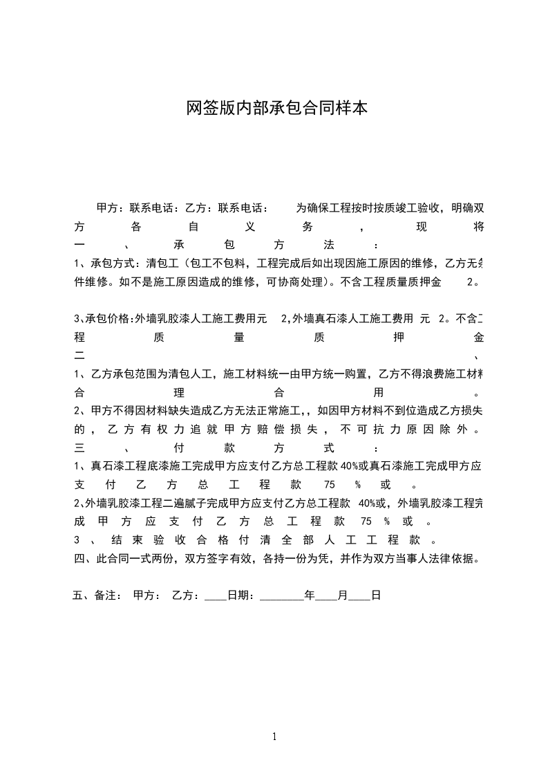 1、承包方式:清包工(包工不包料,工程完成后如出现因施工原因的维修,乙方无条件维修。如不是施工原因造成的维修,可协商处理)。不含工程质量质押金 2。