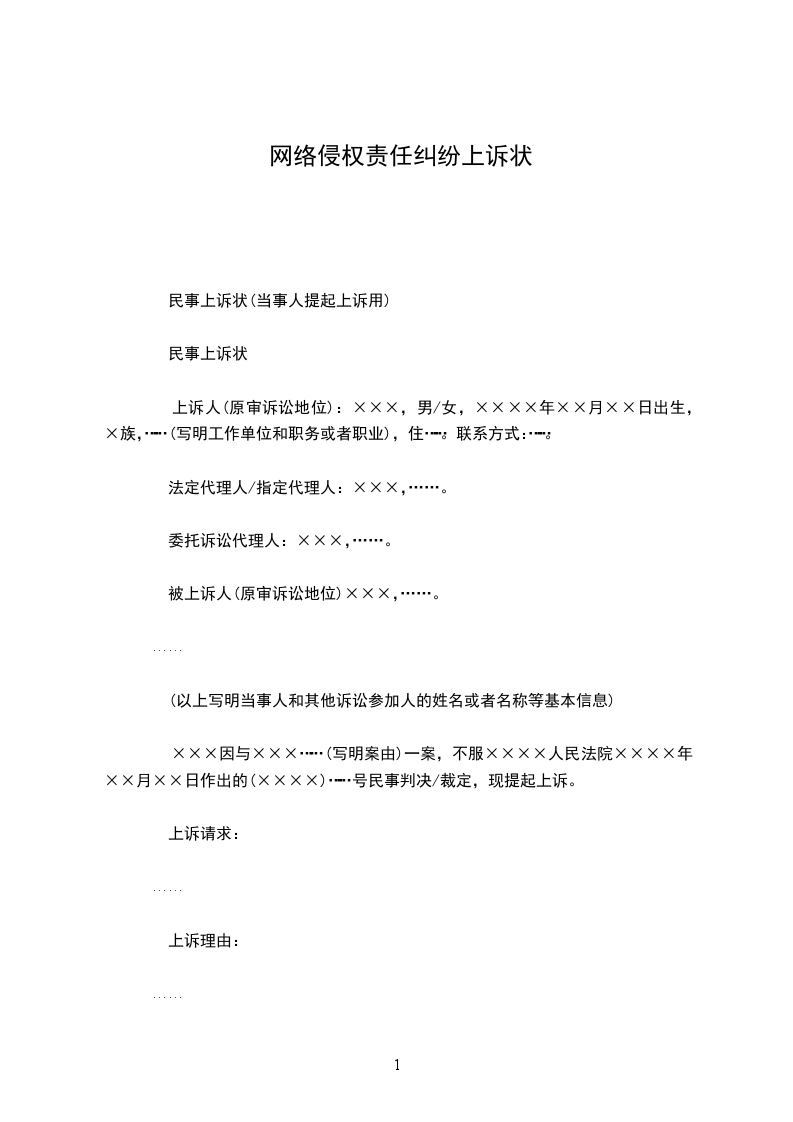 1.本样式根据《中华人民共和国民事诉讼法》,供不服第一审人民法院民事判决或者裁定的当事人,向上一级人民法院提起上诉用。