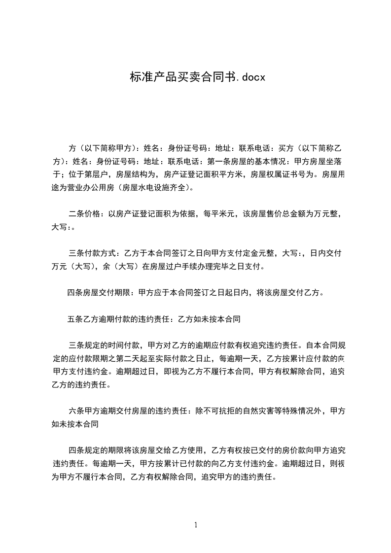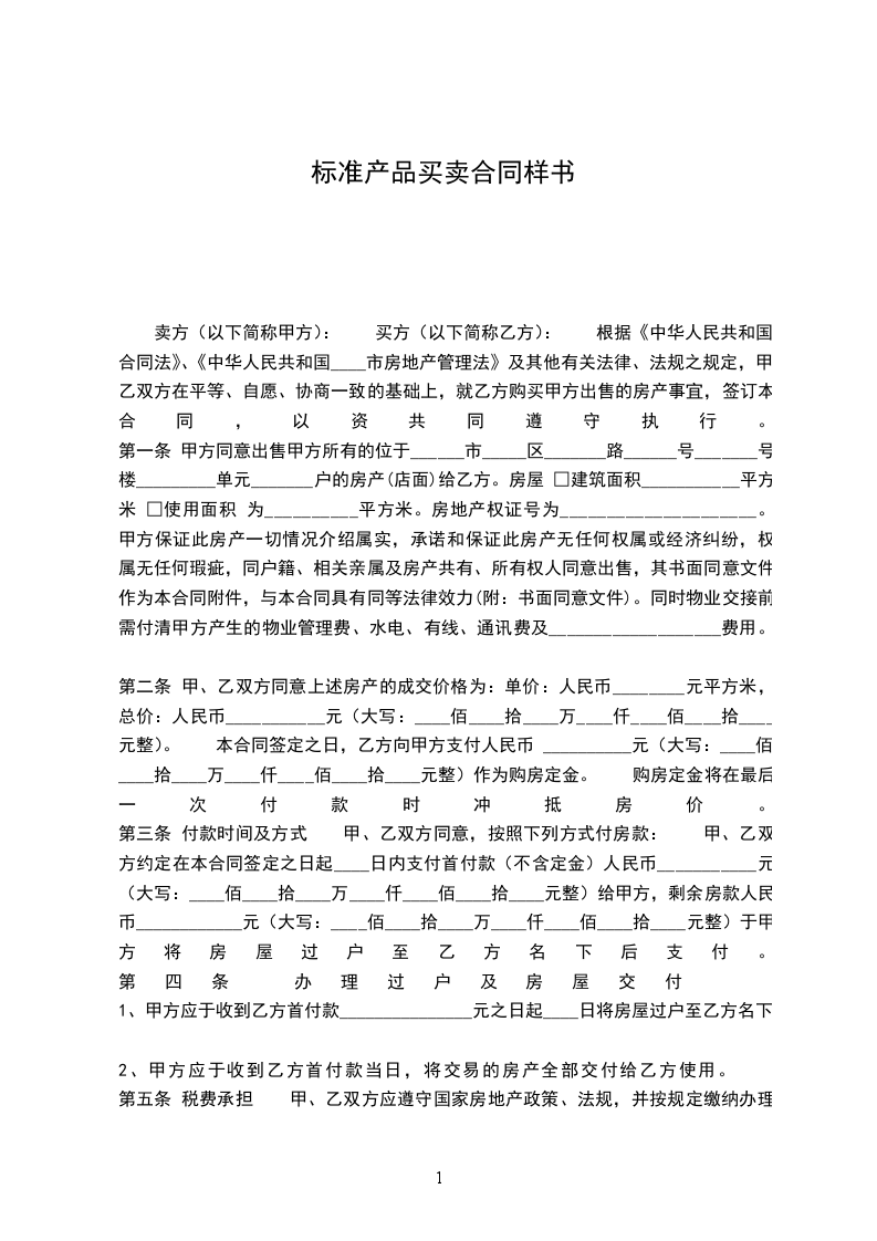 第一条 甲方同意出售甲方所有的位于______市_____区_______路______号_______号楼_________单元_______户的房产(店面)给乙方。房屋 □建筑面积___________平方米 □使用面积 为__________平方米。房地产权证号为_____________________。 甲方保证此房产一切情况介绍属实,承诺和保证此房产无任何权属或经济纠纷,权属无任何瑕疵,同户籍、相关亲属及房产共有、所有权人同意出售,其书面同意文件作为本合同附件,与本合同具有同等法律效力(附:书面同意文件)。同时物业交接前需付清甲方产生的物业管理费、水电、有线、通讯费及___________________费用。