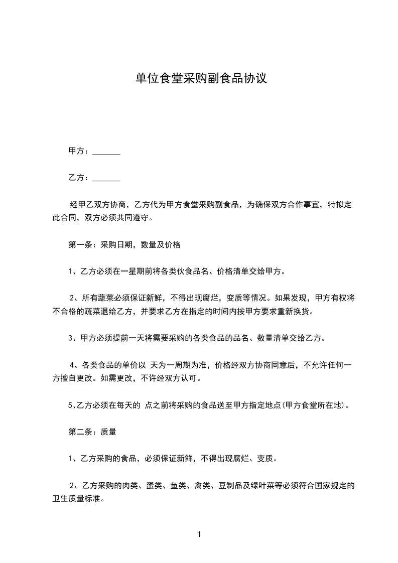 经甲乙双方协商,乙方代为甲方食堂采购副食品,为确保双方合作事宜,特拟定此合同,双方必须共同遵守。