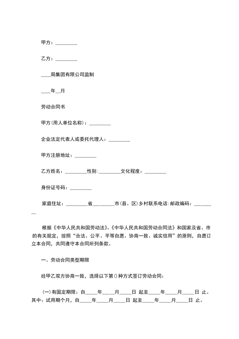 本合同期限类型为期限,自________年____月____日起,至________年____月____日止。