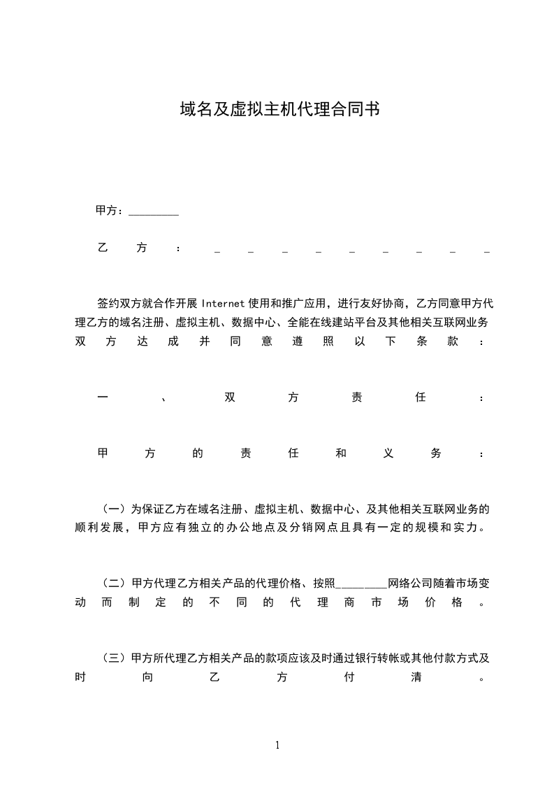 (一)为保证乙方在域名注册、虚拟主机、数据中心、及其他相关互联网业务的顺利发展,甲方应有独立的办公地点及分销网点且具有一定的规模和实力。