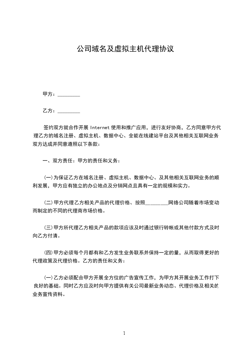 签约双方就合作开展Internet使用和推广应用,进行友好协商,乙方同意甲方代理乙方的域名注册、虚拟主机、数据中心、全能在线建站平台及其他相关互联网业务,双方达成并同意遵照以下条款: