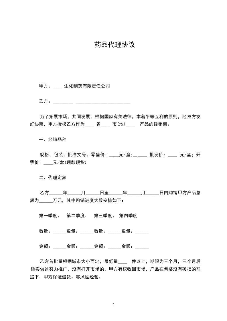 1、 甲方授权乙方取得甲方所代理的上述系列葡萄酒在__________________区域的代理权,并按 合同之约定享有权利和承担义务。