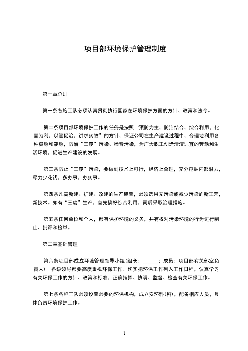 第一条各施工队必须认真贯彻执行国家在环境保护方面的方针、政策和法令。