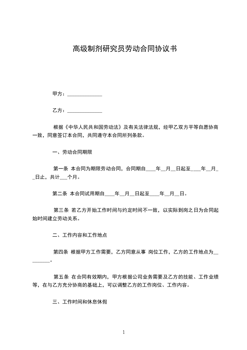 第一条 本合同为期限劳动合同,合同期自____年__月__日起至____年__月__日止,共计___个月。