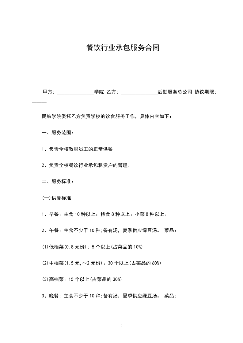 民航学院委托乙方负责学校的饮食服务工作,具体内容如下: