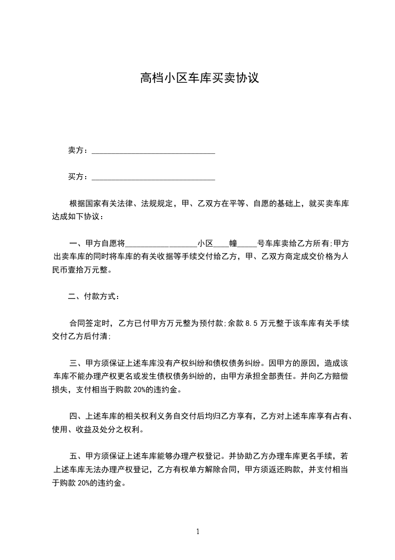1、本合同所指车位使用权转让,总价款为人民币(大写) 元整,乙方付款方式为第 种:_______