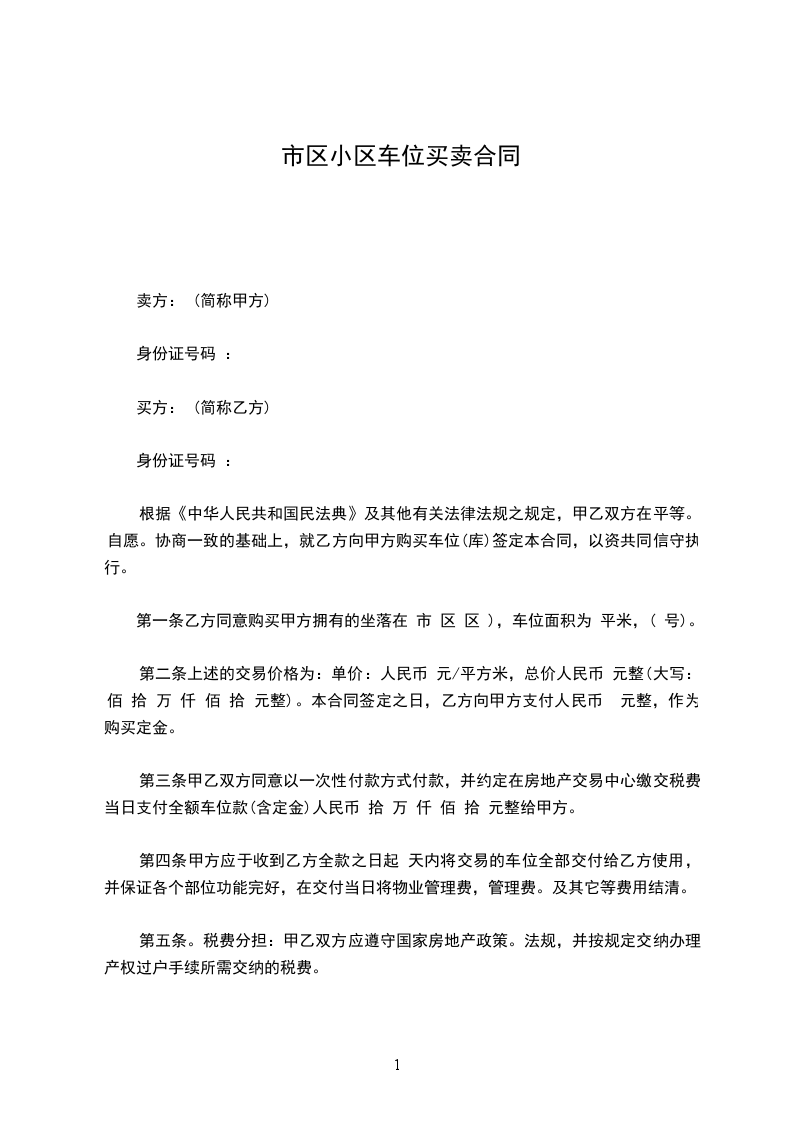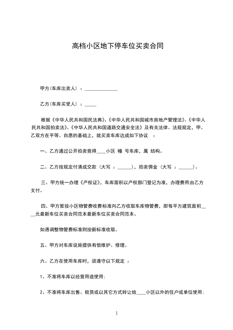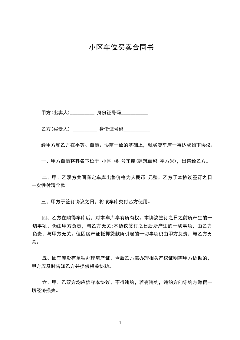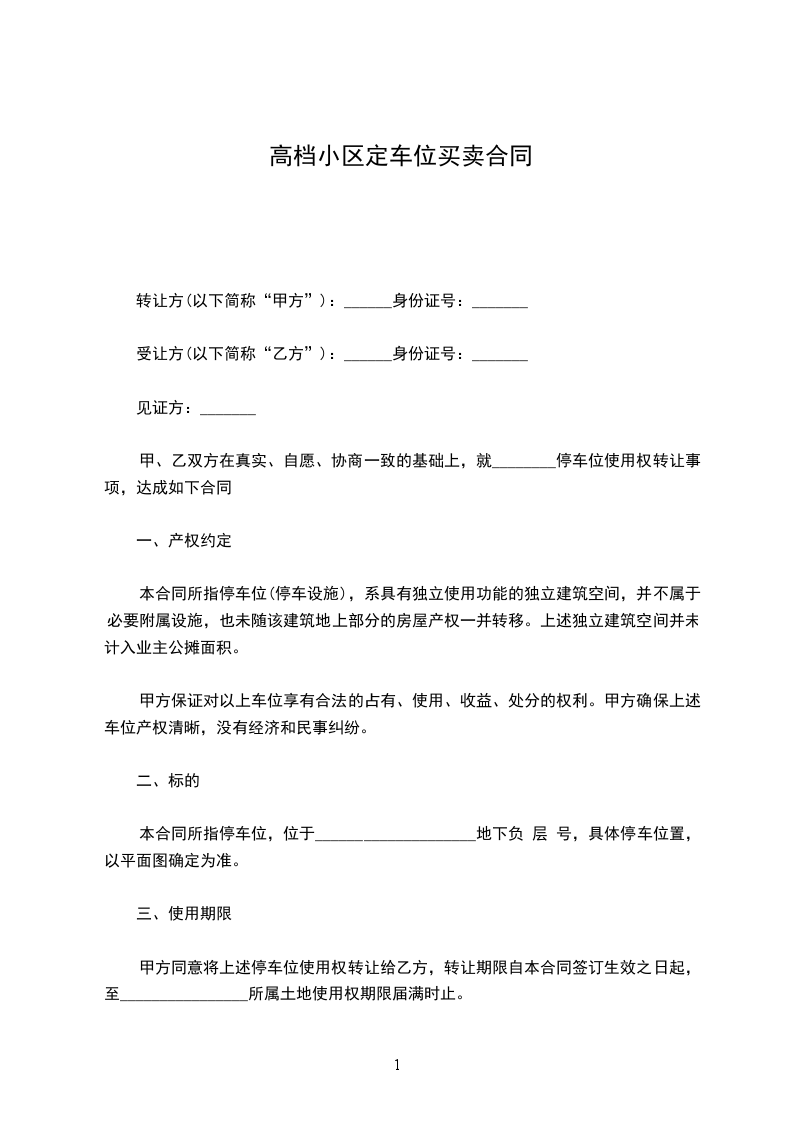 甲、乙双方在真实、自愿、协商一致的基础上,就________停车位使用权转让事项,达成如下合同