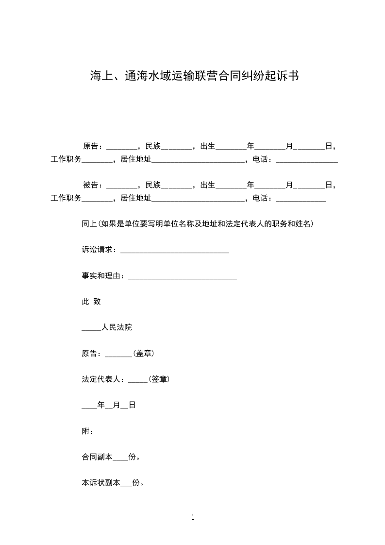 多式联运合同纠纷起诉书