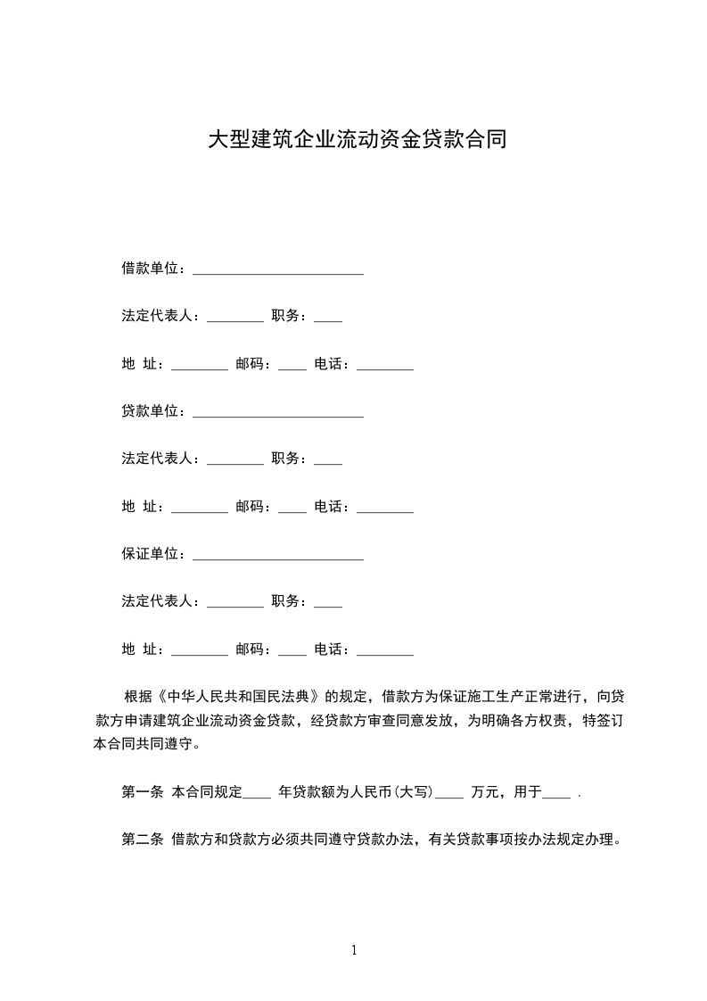 根据《中华人民共和国民法典》的规定,借款方为保证施工生产正常进行,向贷款方申请建筑企业流动资金贷款,经贷款方审查同意发放,为明确各方权责,特签订本合同共同遵守。