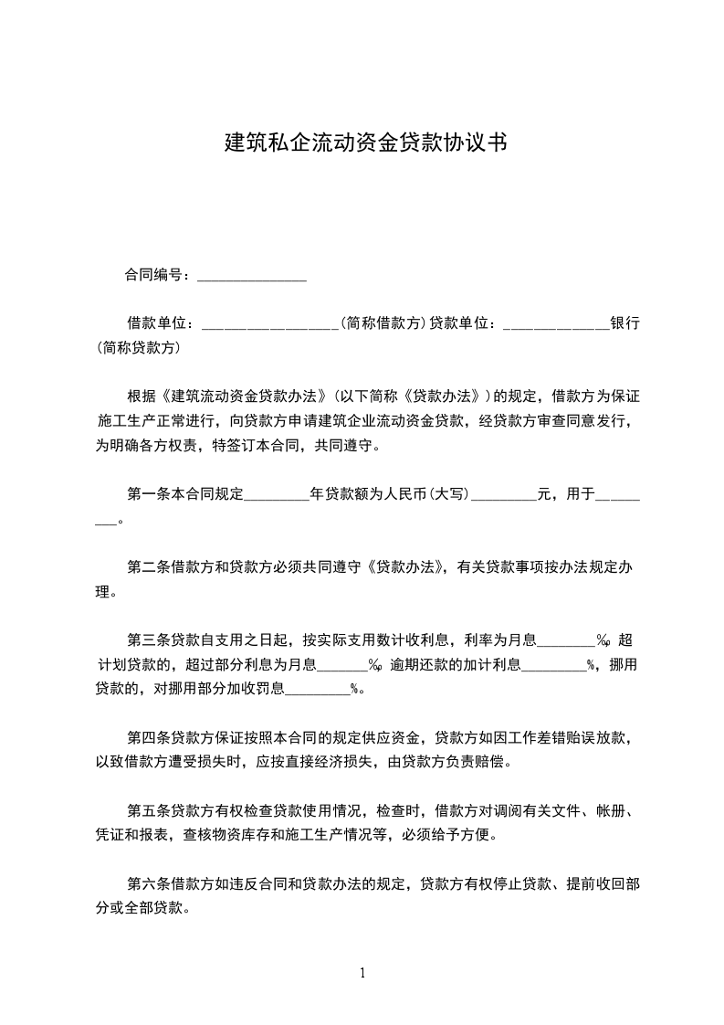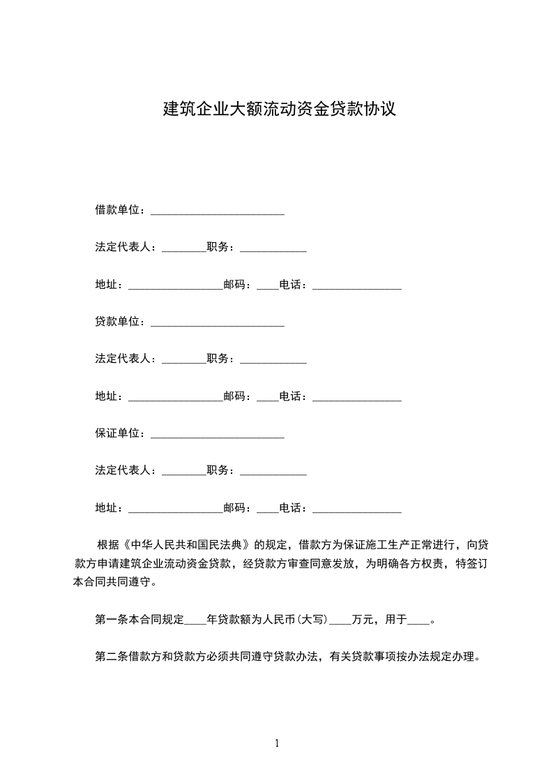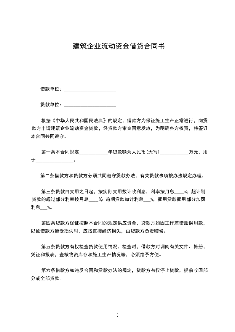 根据《中华人民共和国民法典》的规定,借款方为保证施工生产正常进行,向贷款方申请建筑企业流动资金贷款,经贷款方审查同意发放,为明确各方权责,特签订本合同共同遵守。
