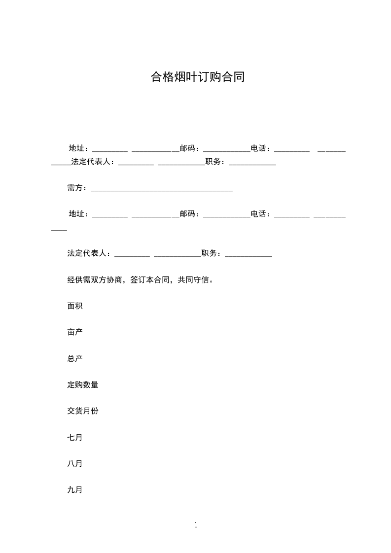 经供需双方协商,签订本合同,共同守信。