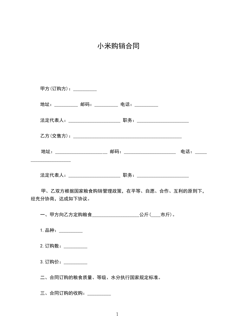 甲、乙双方根据国家粮食购销管理政策,在平等、自愿、合作、互利的原则下,经充分协商,达成如下协议。