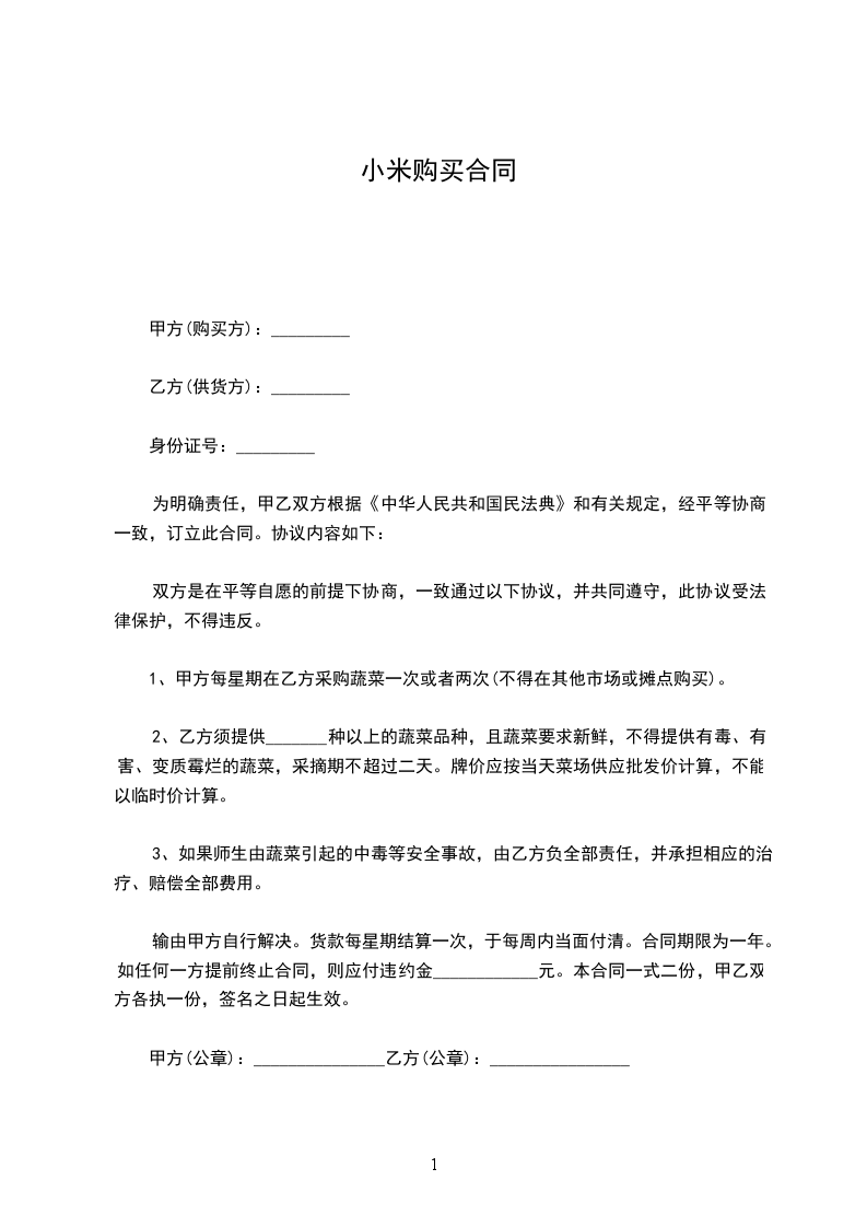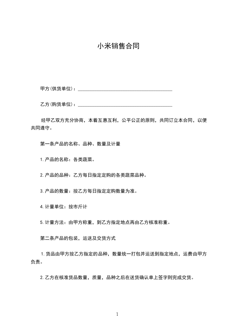 一、甲方向乙方定购粮食____________________公斤(____市斤)。