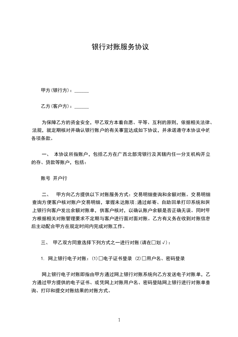 1. 采用电子证书登录网上银行的电子对账,乙方必须成功注册广西北部湾银行网上银行,按照相关业务规则与甲方对账。乙方授权、指定对账人员必须是其账户网上银行操作员。