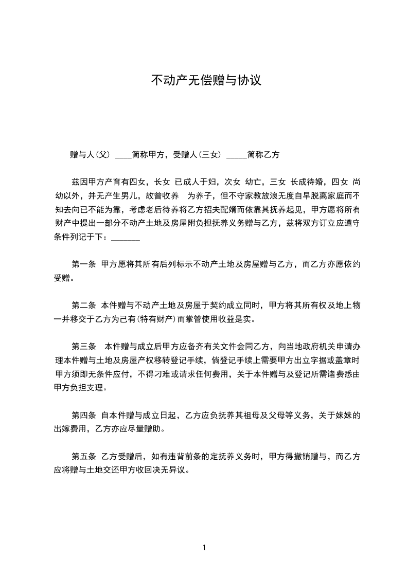 赠与人(父) ____简称甲方,受赠人(三女) _____简称乙方