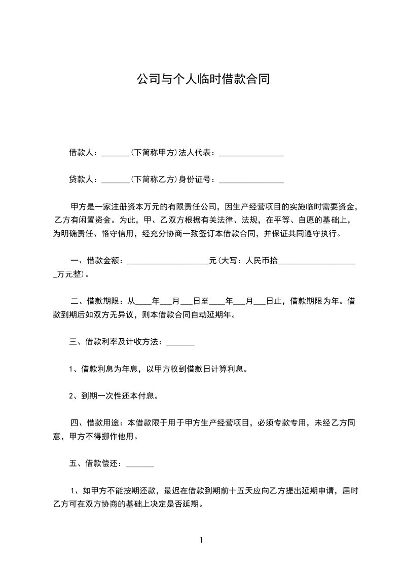 一、借款金额:____________________元(大写:人民币拾____________________万元整)。