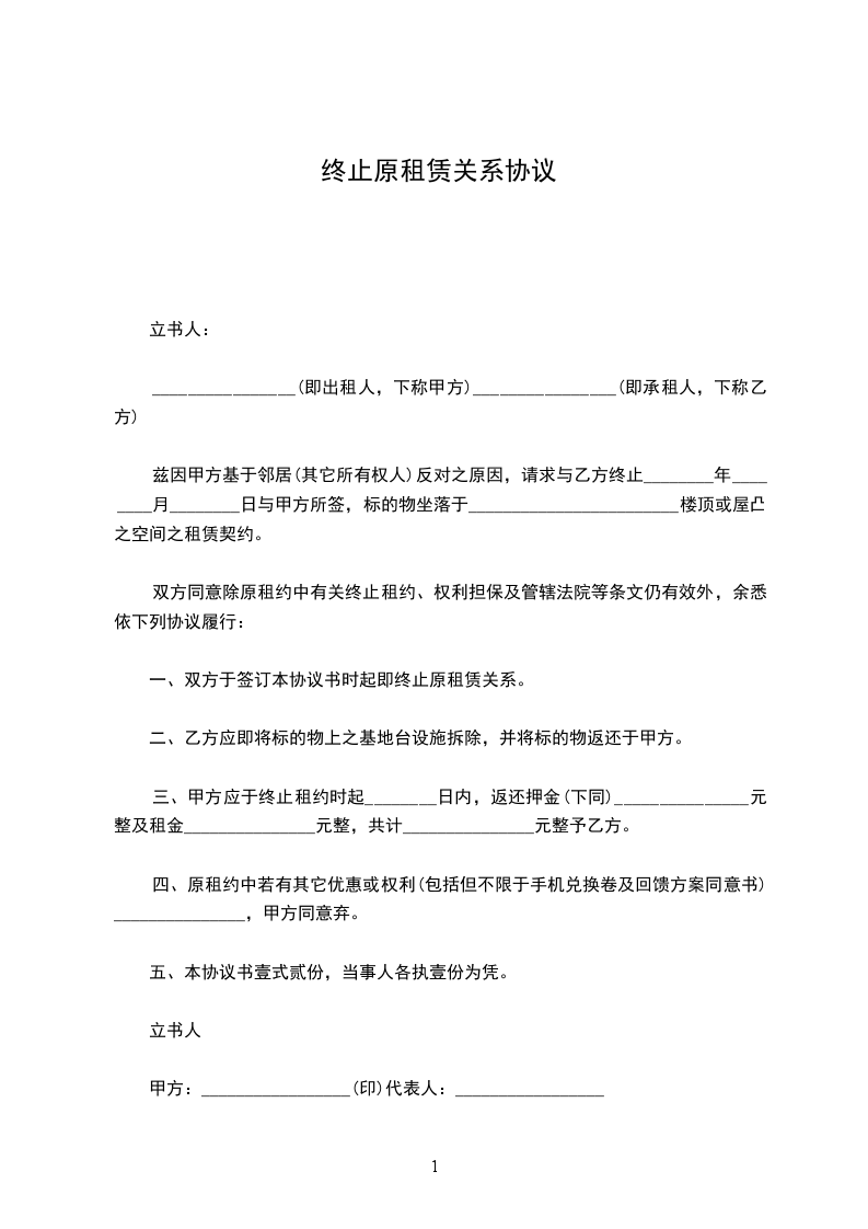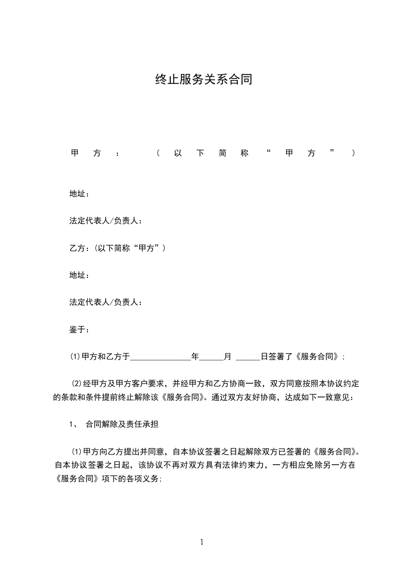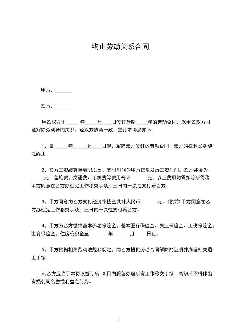一、自________年____月____日起,解除双方签订的劳动合同,双方的权利义务随之终止。