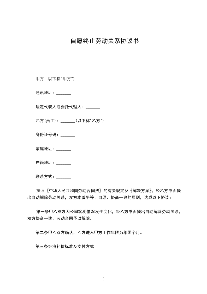 三、甲方同意向乙方支付经济补偿金共计人民币______元。(税前)甲方同意在乙方办理完工作移交手续后____日内一次性支付给乙方。风险提示:_____