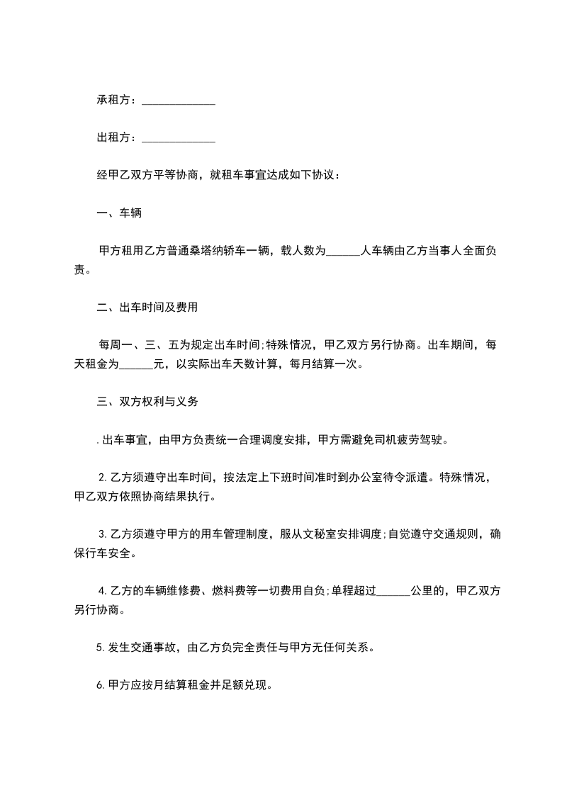 5、车辆在交付给乙方后,车辆的保养维护、维修、年检、保险等工作全部由乙方自行办理,费用全部由乙方承担。