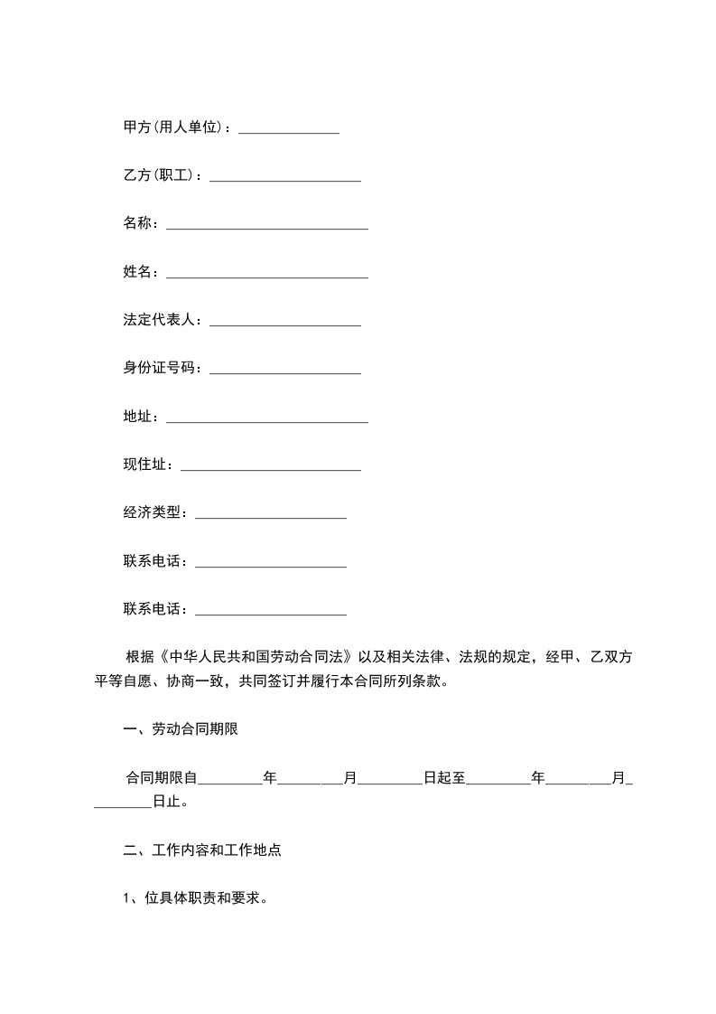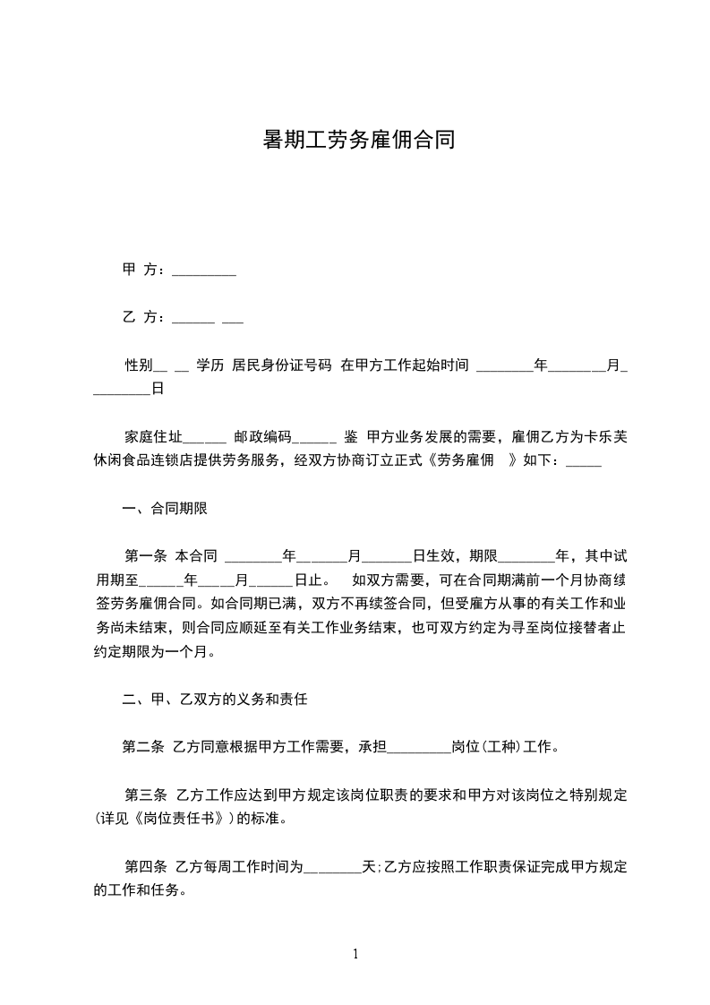 一、合同有效期:自________年____月____日至________年____月_____日止,合同期满雇佣关系自然终止。雇佣合同期满前一个月,经双方协商同意,可以续订雇佣合同。