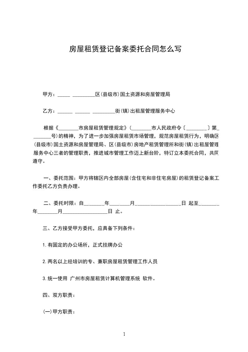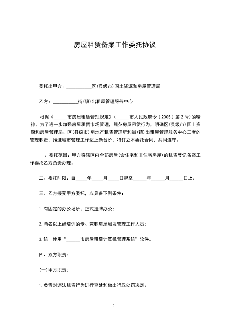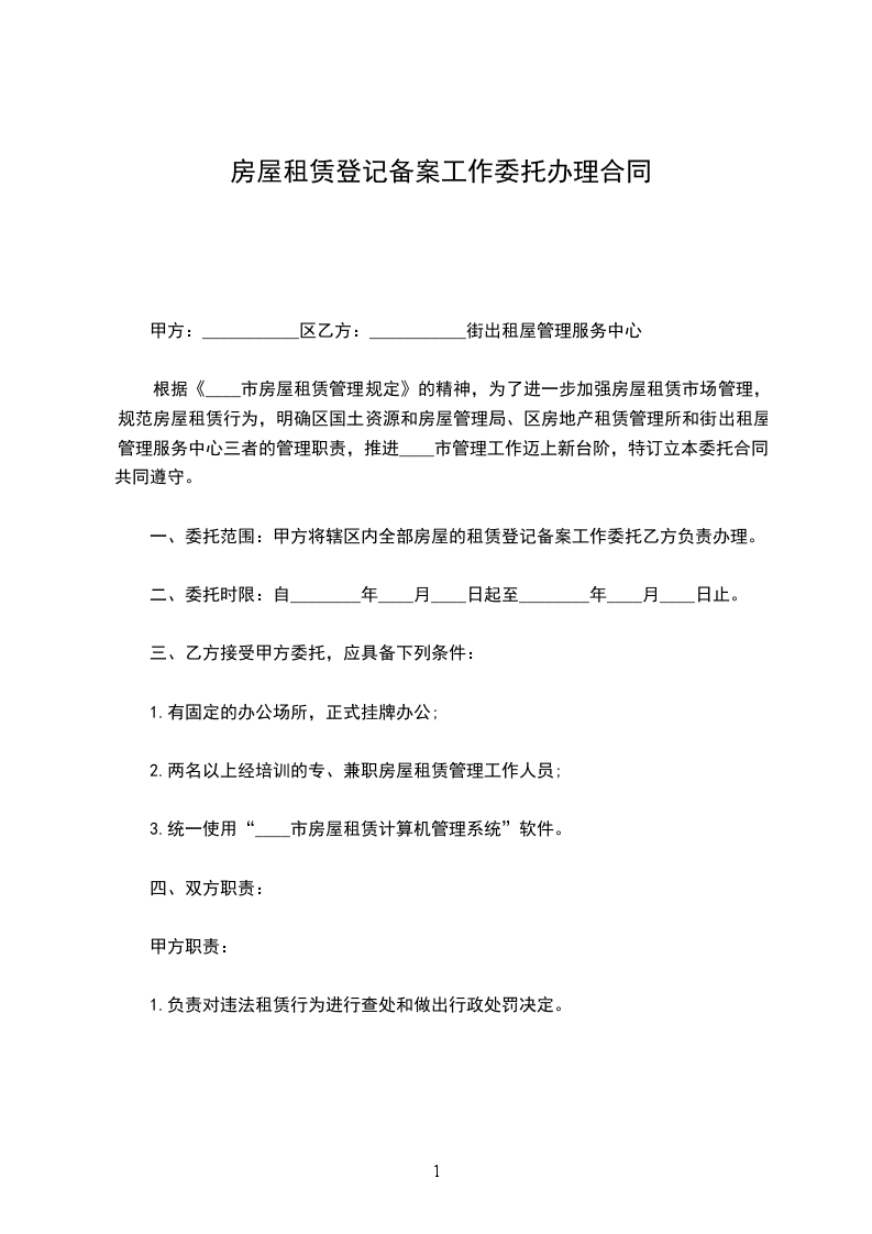 一、委托范围:甲方将辖区内全部房屋(含住宅和非住宅房屋)的租赁登记备案工作委托乙方负责办理。