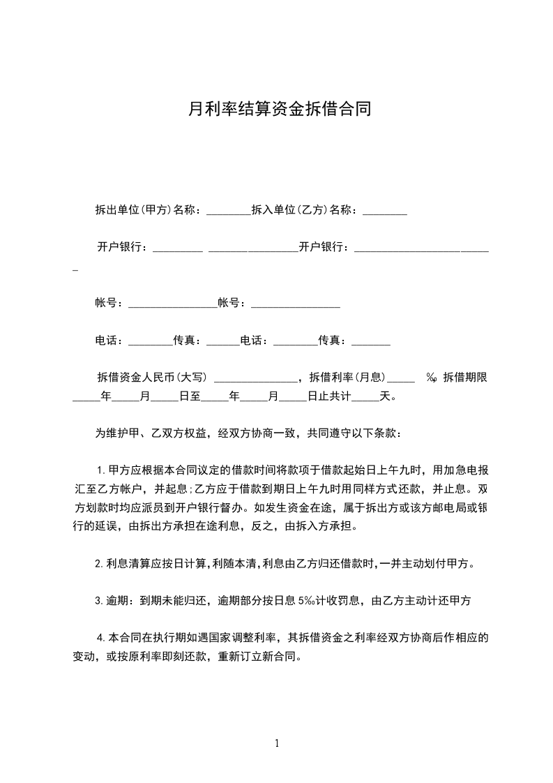4.本合同在执行期如遇国家调整利率,其拆借资金之利率经双方协商后作相应的变动,或按原利率即刻还款,重新订立新合同。