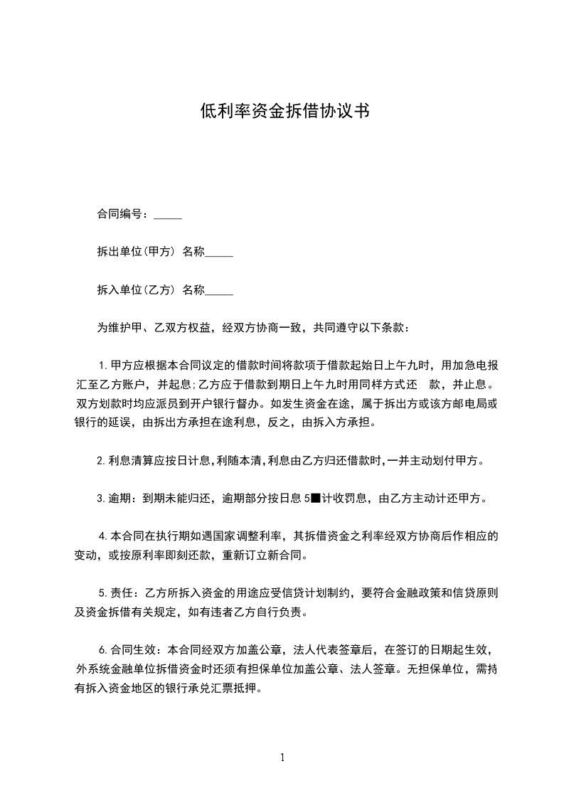 6.合同生效:本合同经双方加盖公章,法人代表签章后,在签订的日期起生效,外系统金融单位拆借资金时还须有担保单位加盖公章、法人签章。无担保单位,需持有拆入资金地区的银行承兑汇票抵押。