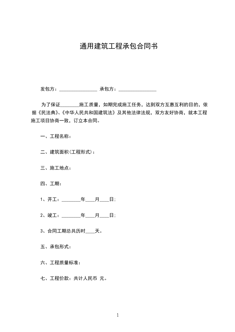 为了保证________施工质量,如期完成施工任务,达到双方互惠互利的目的,依据《民法典》、《中华人民共和国建筑法》及其他法律法规,双方友好协商,就本工程施工项目协商一致,订立本合同。