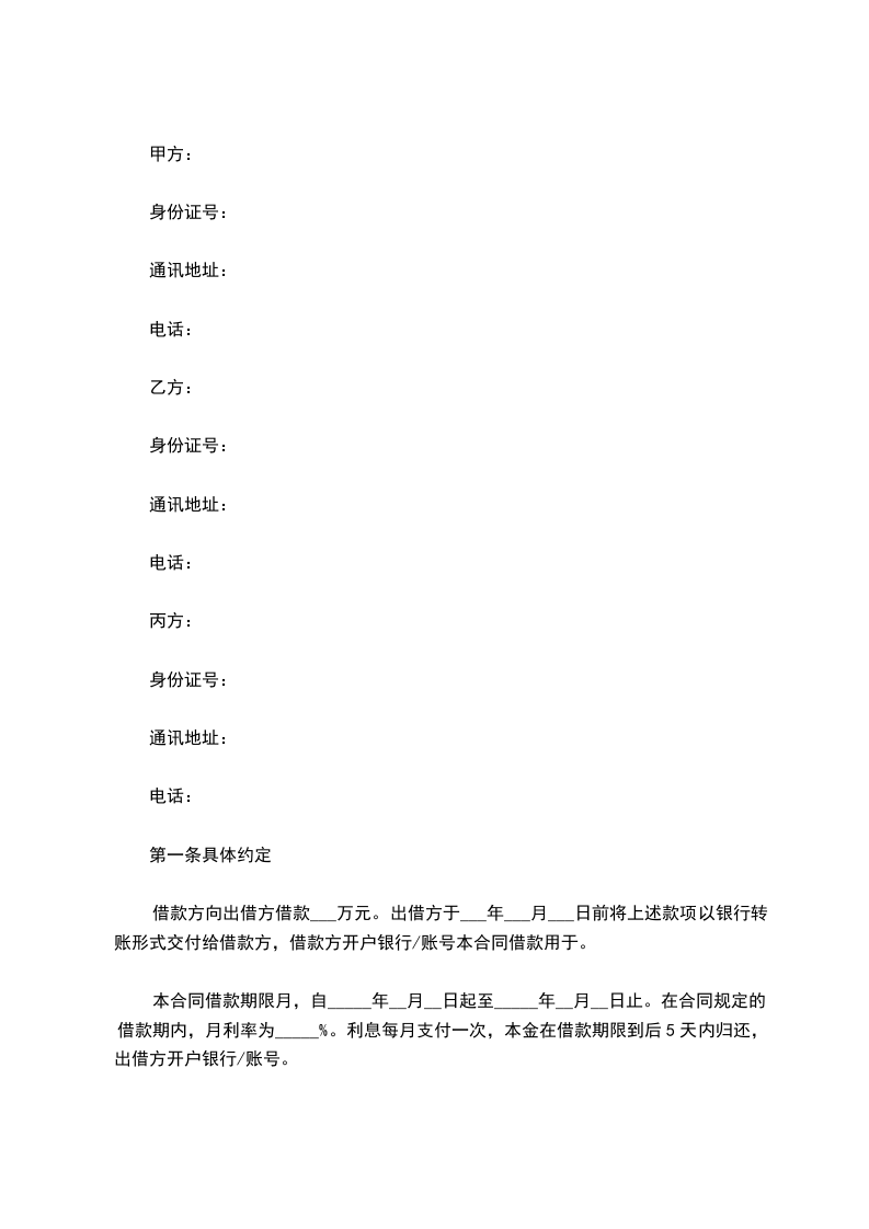第一条甲方向乙方拆出资金人民币(大写)_________元,拆借期限自_________年______月______日起至_______年_____月_____日止。共计______天,拆借利率为月息千分之_____。