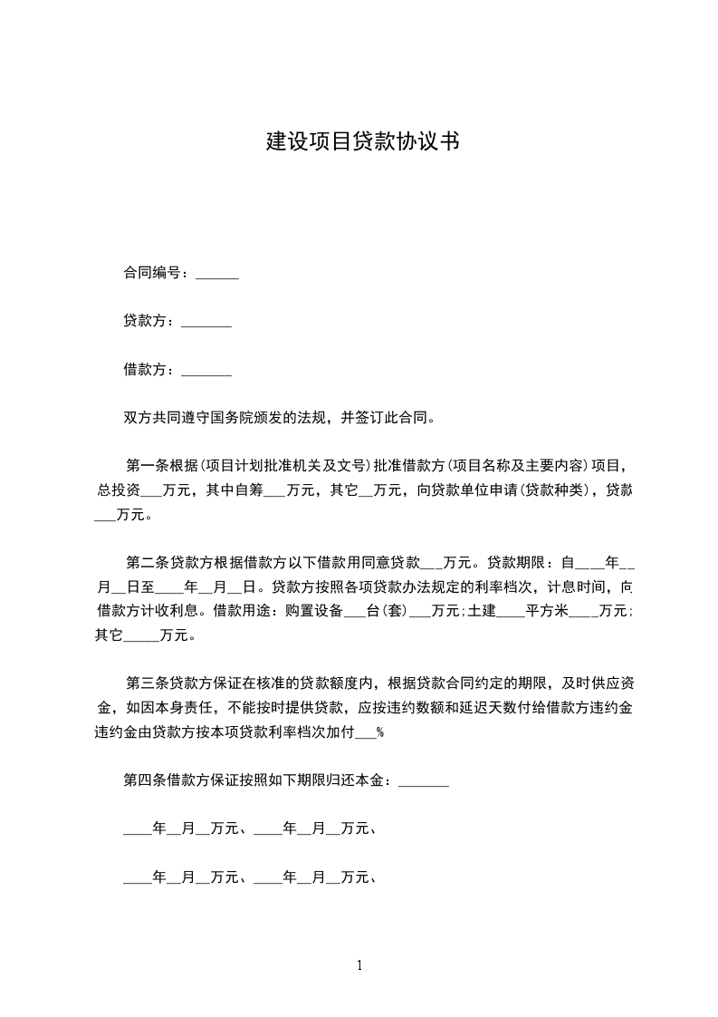 第一条根据(项目计划批准机关及文号)批准借款方(项目名称及主要内容)项目,总投资___万元,其中自筹___万元,其它__万元,向贷款单位申请(贷款种类),贷款___万元。