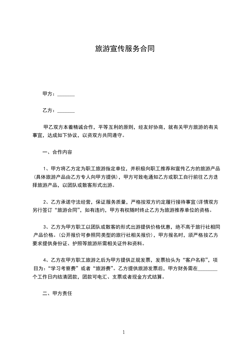 1、甲方将乙方定为职工旅游指定单位,并积极向职工推荐和宣传乙方的旅游产品(具体旅游产品由乙方专人向甲方提供),甲方可致电通知乙方或职工自行前往乙方选择旅游产品,以团队或散客形式出游。