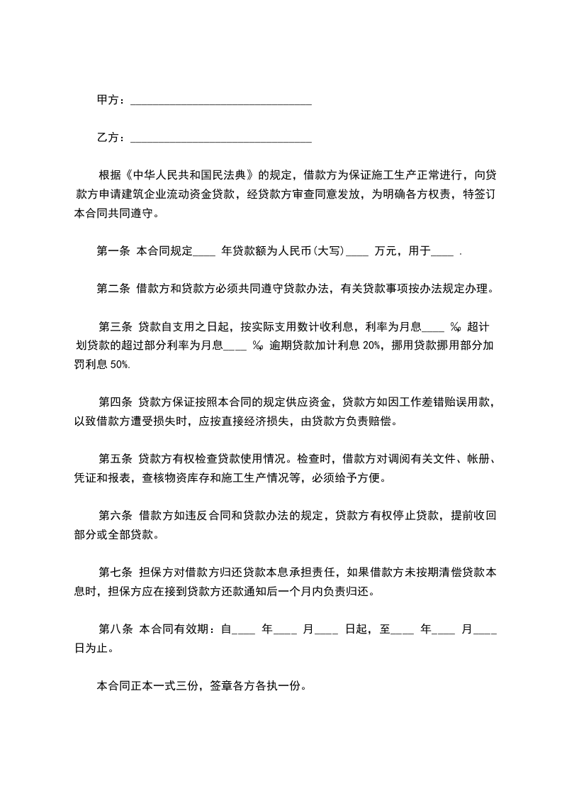 一、甲方向乙方借款人民币(大写)____________,保证用于__________。借款期限为____年____月,即从 ___年____月___日至____年___月___日。