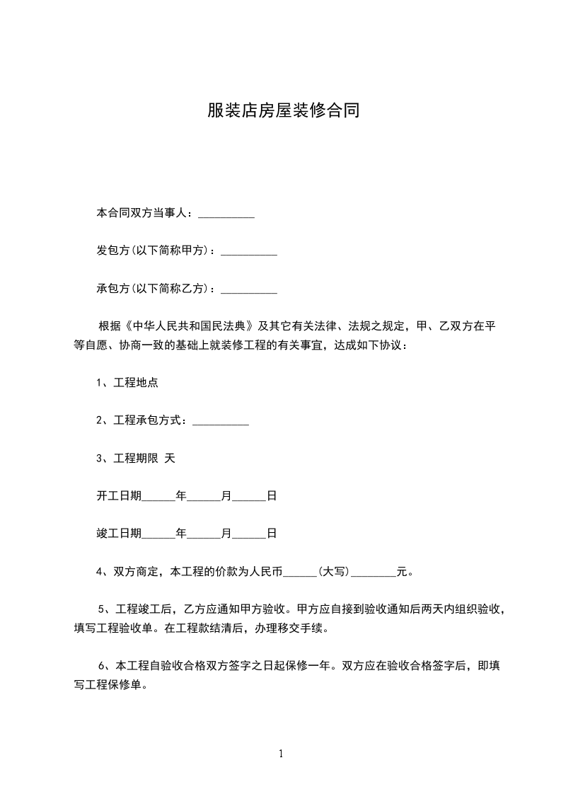 6、本工程自验收合格双方签字之日起保修一年。双方应在验收合格签字后,即填写工程保修单。