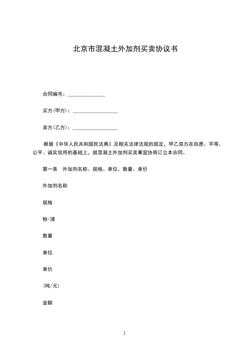 根据《中华人民共和国民法典》及相关法律法规的规定,甲乙双方在自愿、平等、公平、诚实信用的基础上,就混凝土外加剂买卖事宜协商订立本合同。