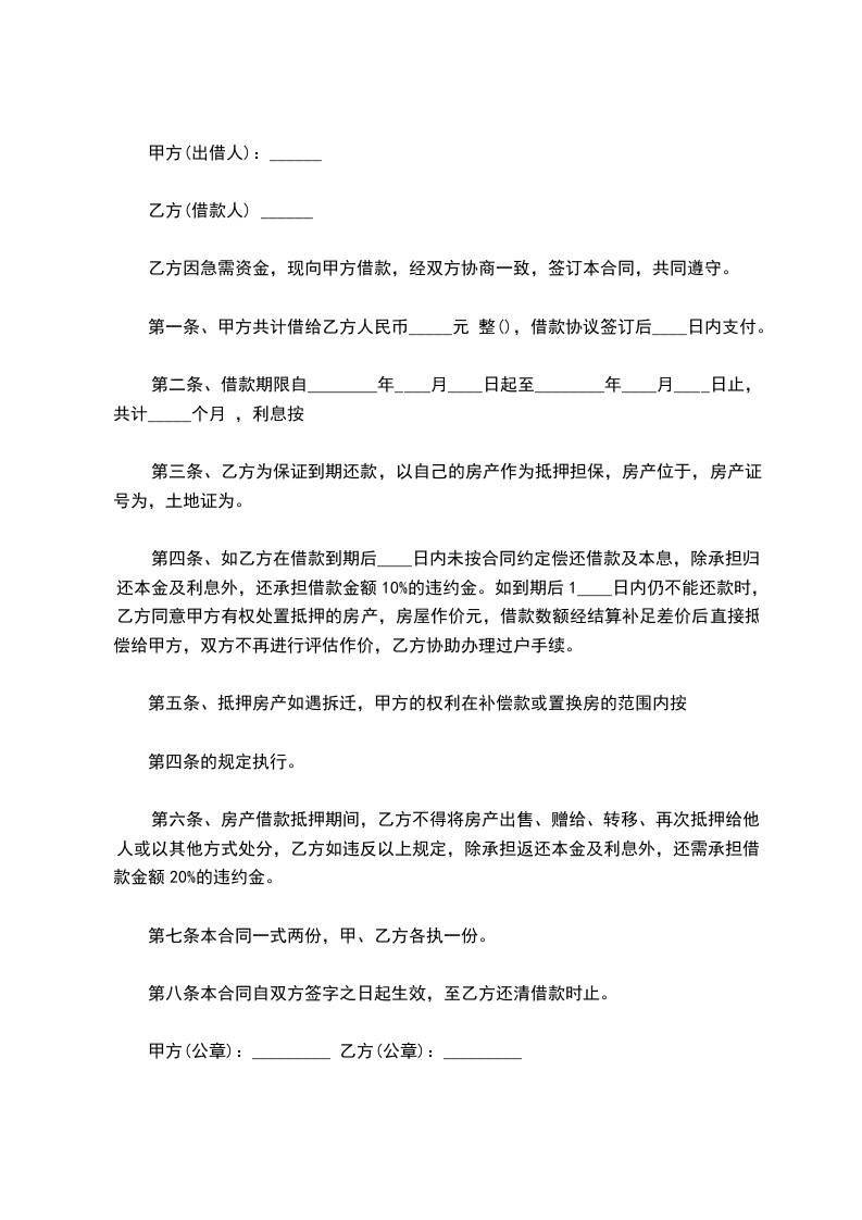 抵押条款现抵押人同意以其所有的房屋的价值为抵押,为本《借款合同》下的借款做担保。抵押物基本情况详见所附房屋所有权证、国有土地所有权证复印件。