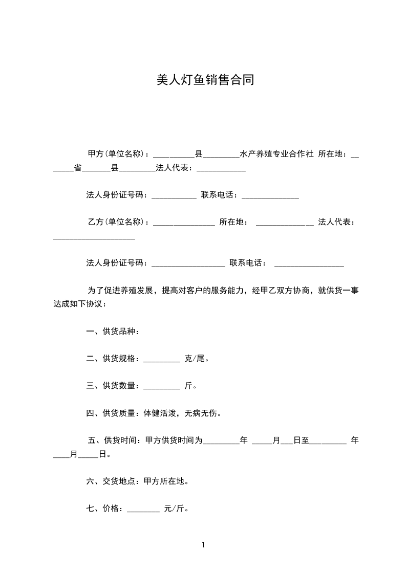 美人灯鱼销售合同